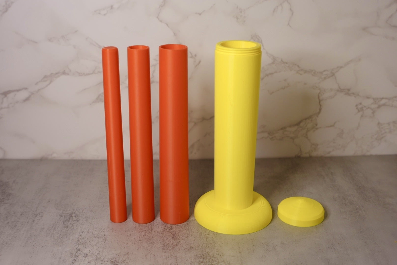 This sword design is print-in-place and doesn't require any support materials. Fully functional right off the build plate! Simply print out the handle, end cap, and three blade pieces and you can easily build your own custom sword by inserting the blade pieces into the handle and screwing on the end cap!"