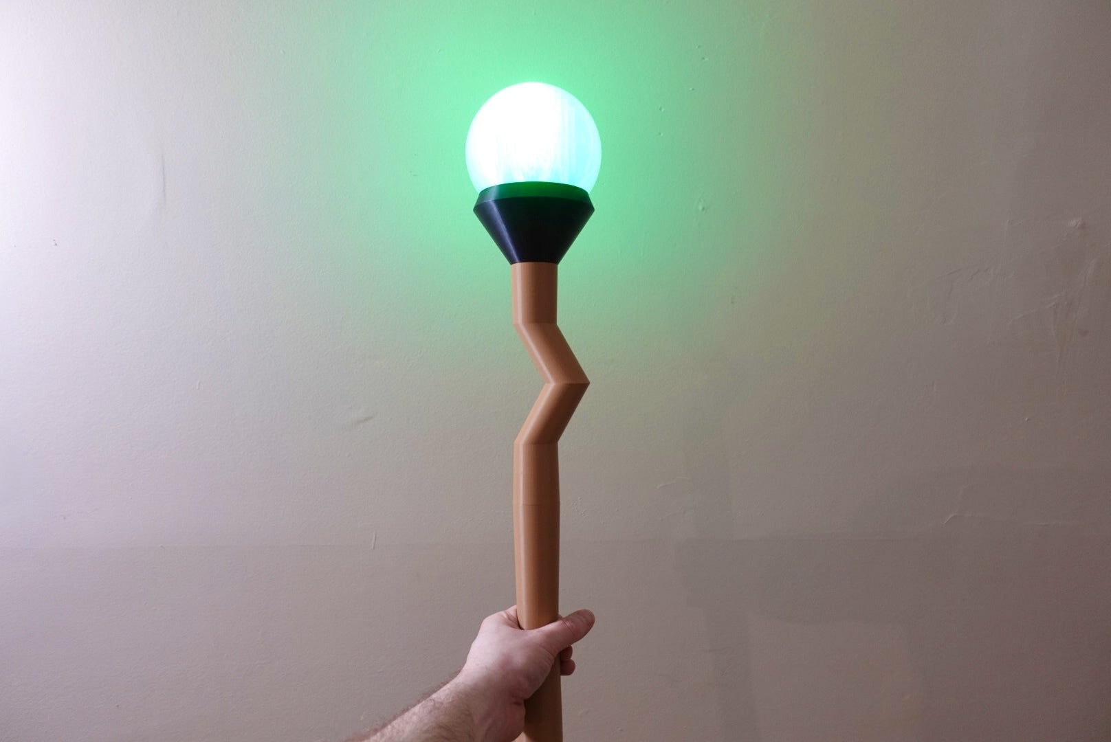LED Crystal & LED Orb attachments for the MysticMesh3D Cosplay Wizard Staff are also included! These attachments fit onto the same base as the original staff and are alternative looks you can use to upgrade your staff. You can print the crystal and orb in solid colors or print them in clear filament to use with the LED light!