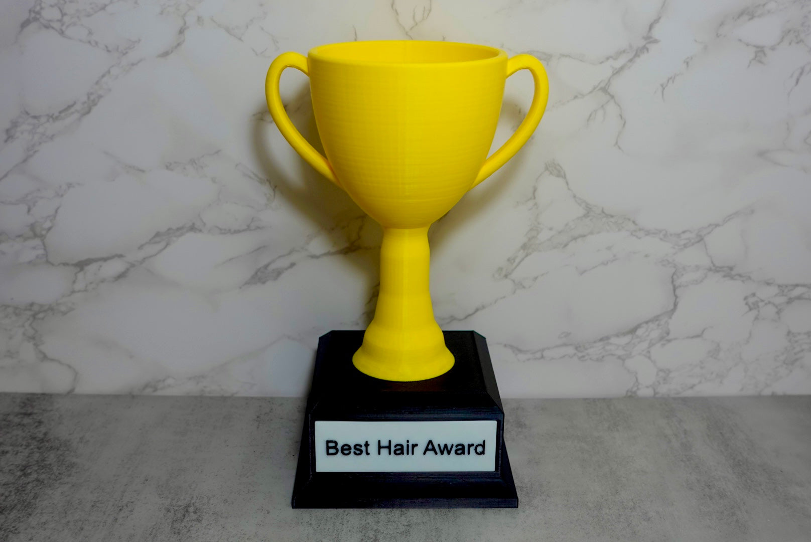 "Create your own custom 3D printed trophy! Create awards for the office, family gatherings, competitions, the holiday seasons, and more! Blank text box included so you're able to offer your customers the option to add their own custom text which will drive sales. You can also think of your own different trophy ideas and allow your customers to choose from your selection of trophies that you created! You can make funny trophies, serious trophies, or cool looking trophies with different color combinations. I've also included the trophy base without the trophy itself so you can create custom trophies with non-3D printed items. You can use adhesive to attach items like funko pops, lego figures, barbies/action figures, or whatever else you can think of!