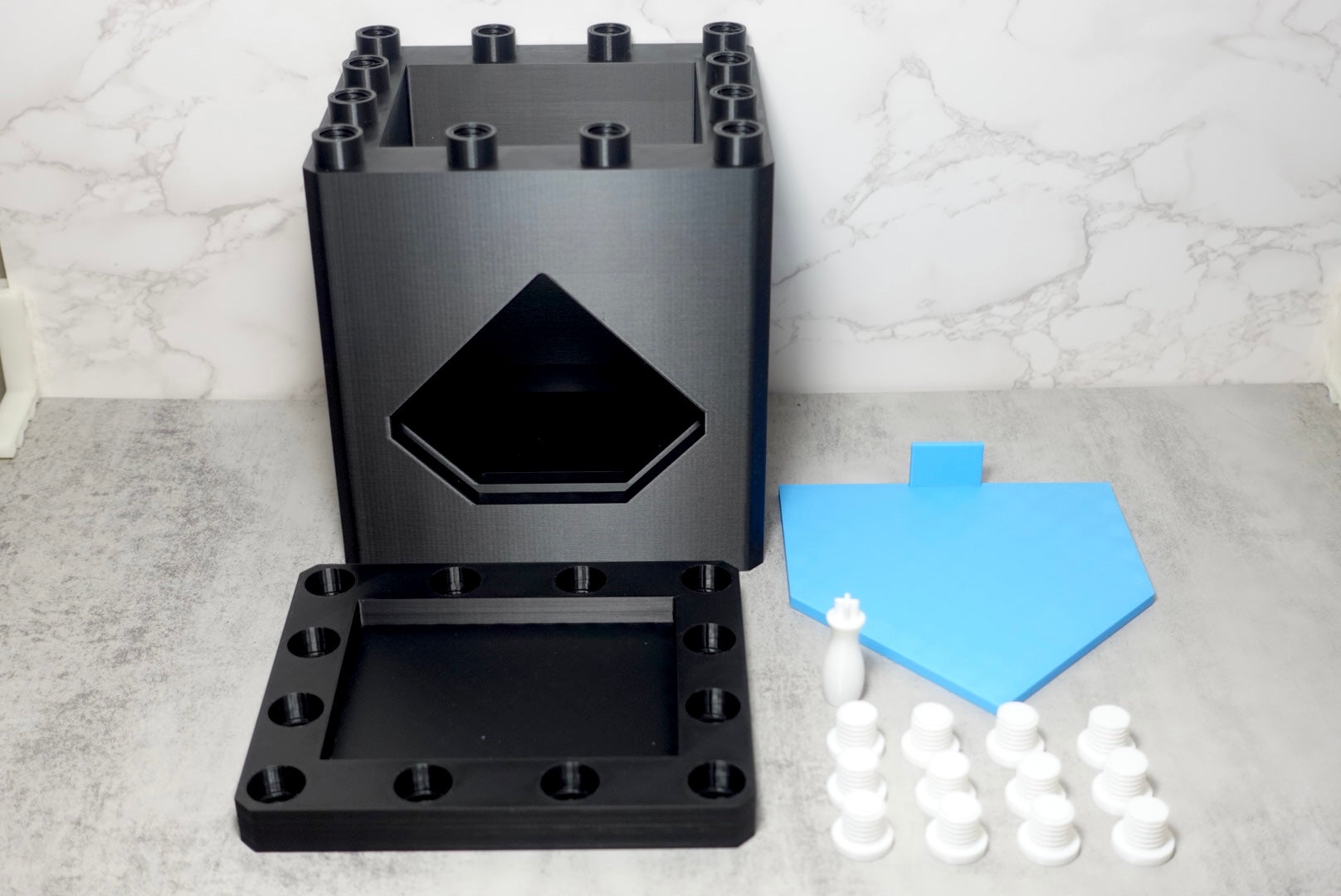 This product prints in two separate pieces and includes 12x 3D printed screws to assemble. Use a screwdriver or the provided 3D printed tool with assembly.