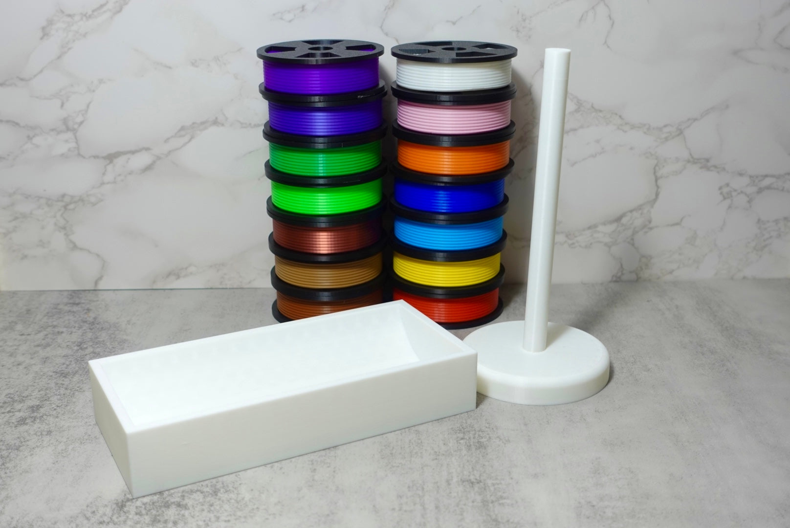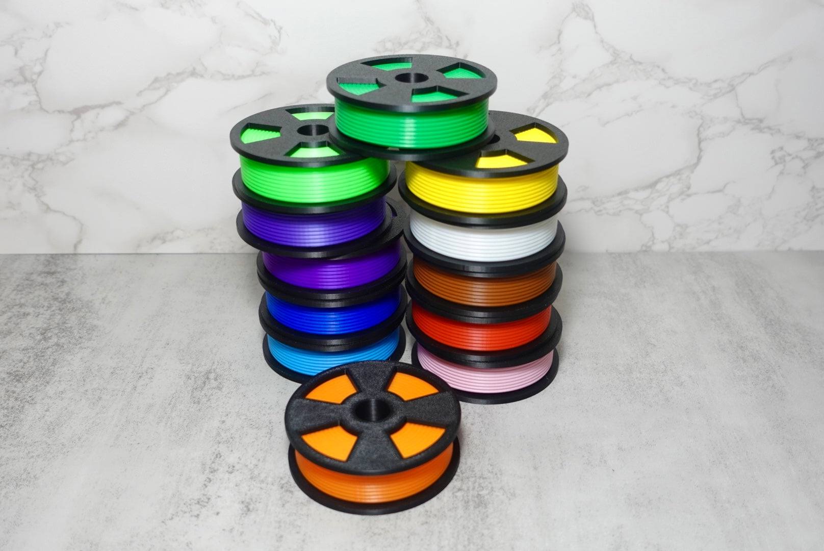 "The perfect 3D print to show your customers all of the different colors your shop offers! Benchys and other small calibration prints are a thing of the past. Every time you buy a new spool of filament you can print out a mini spool and grow your collection so you'll always have a reference for every filament you've used. These mini spools have enough room on the sides to add a small label so you can include information about the spool like brand, color name, and filament type.