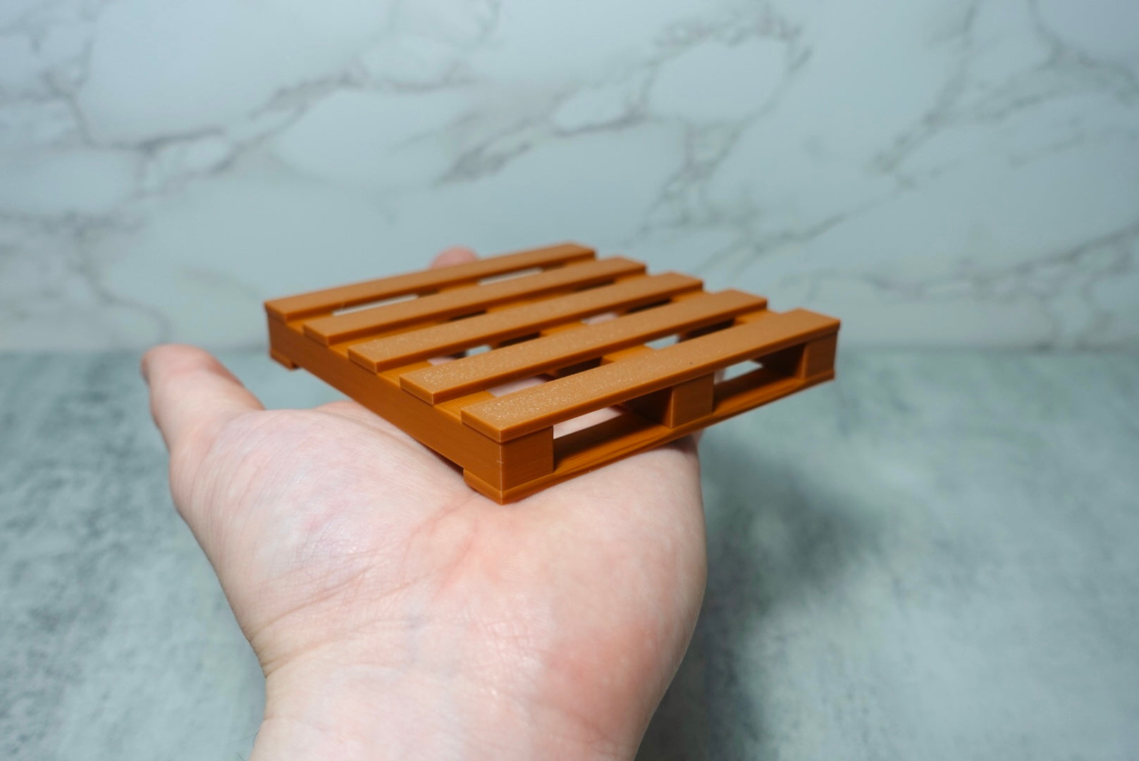 "3D printable mini wooden pallet! This innovative design eliminates the need for support materials during printing, ensuring easy and hassle-free creation.