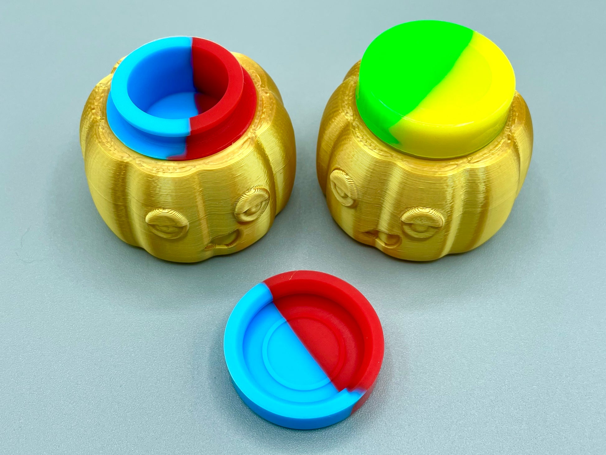 "Upgrade your boring silicone containers with a 3D printed Pumpkin Buddy!