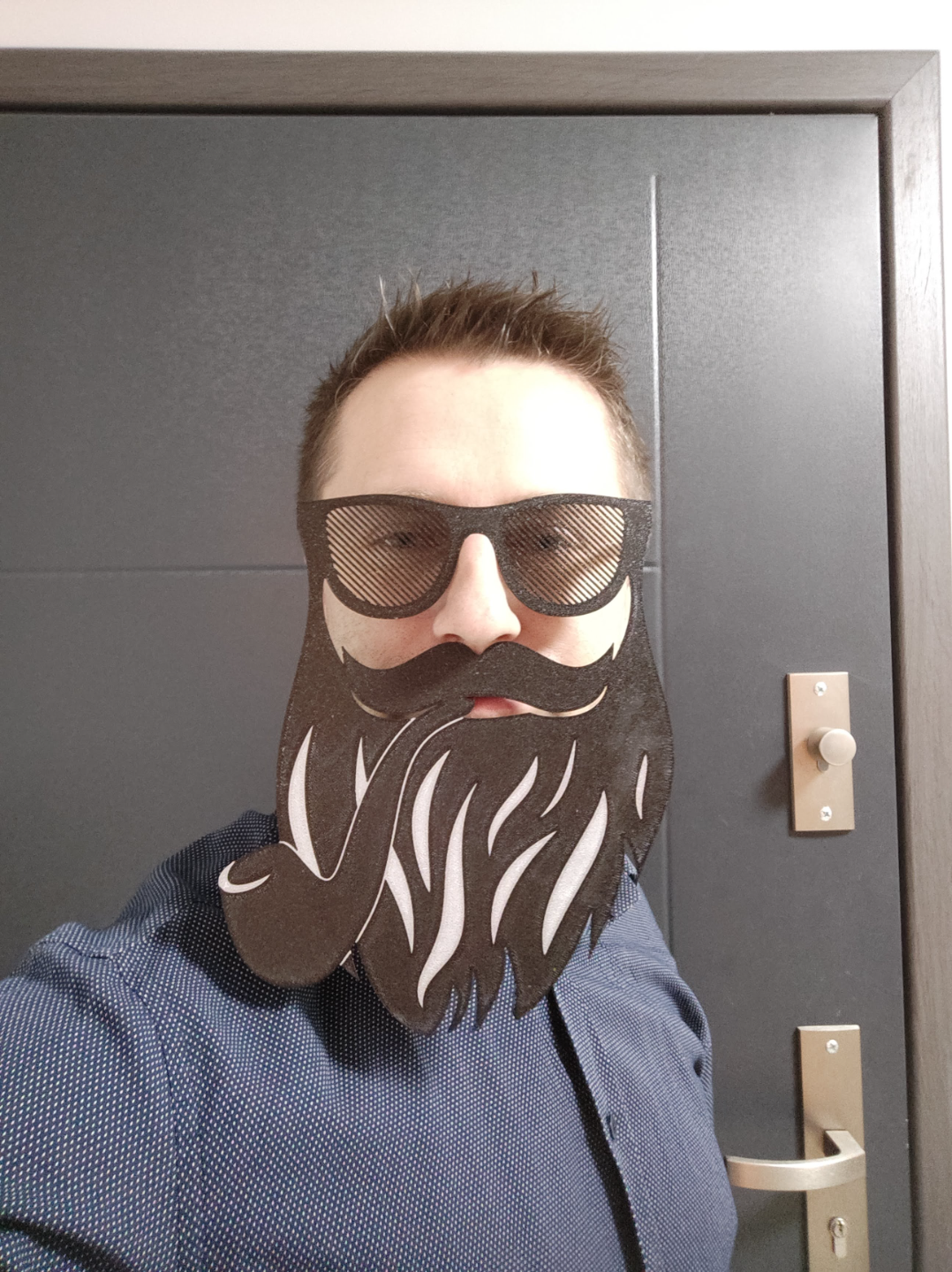 The Hipster Mask is a playful accessory designed as a full-face disguise featuring a connected beard-and-glasses shape with a detachable hair piece. This version focuses on a simple single-style print that captures the humorous hipster look while remaining easy to assemble and comfortable to wear.